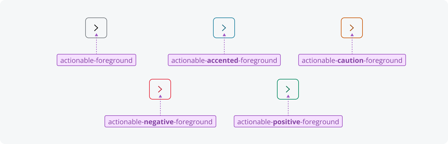 2. Characteristic*: Included in all semantic tokens to group tokens that share the same purpose or function (e.g., accent, actionable, container, content).