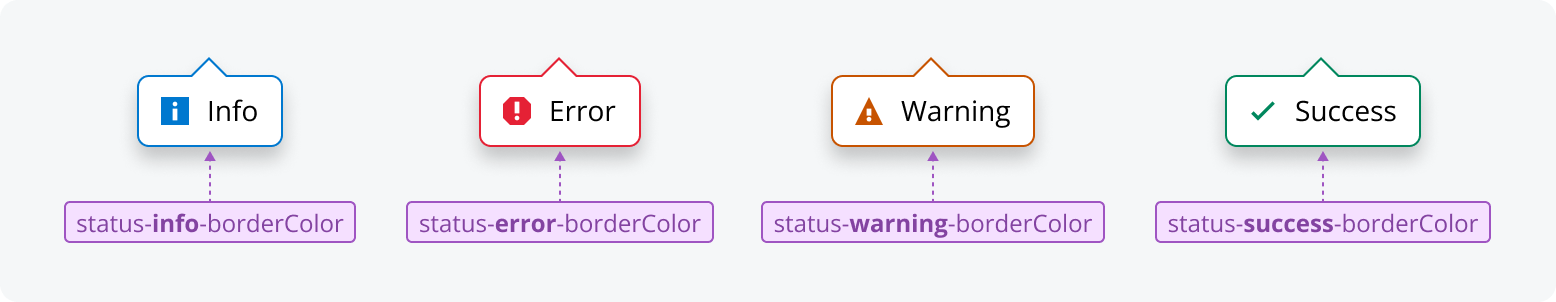 3. Specifier: Defines a subset of a characteristic, separating tokens into specific use cases or contexts. This helps clarify the intended application of the token within its characteristic group (e.g., separating different types of statuses or sentiments).